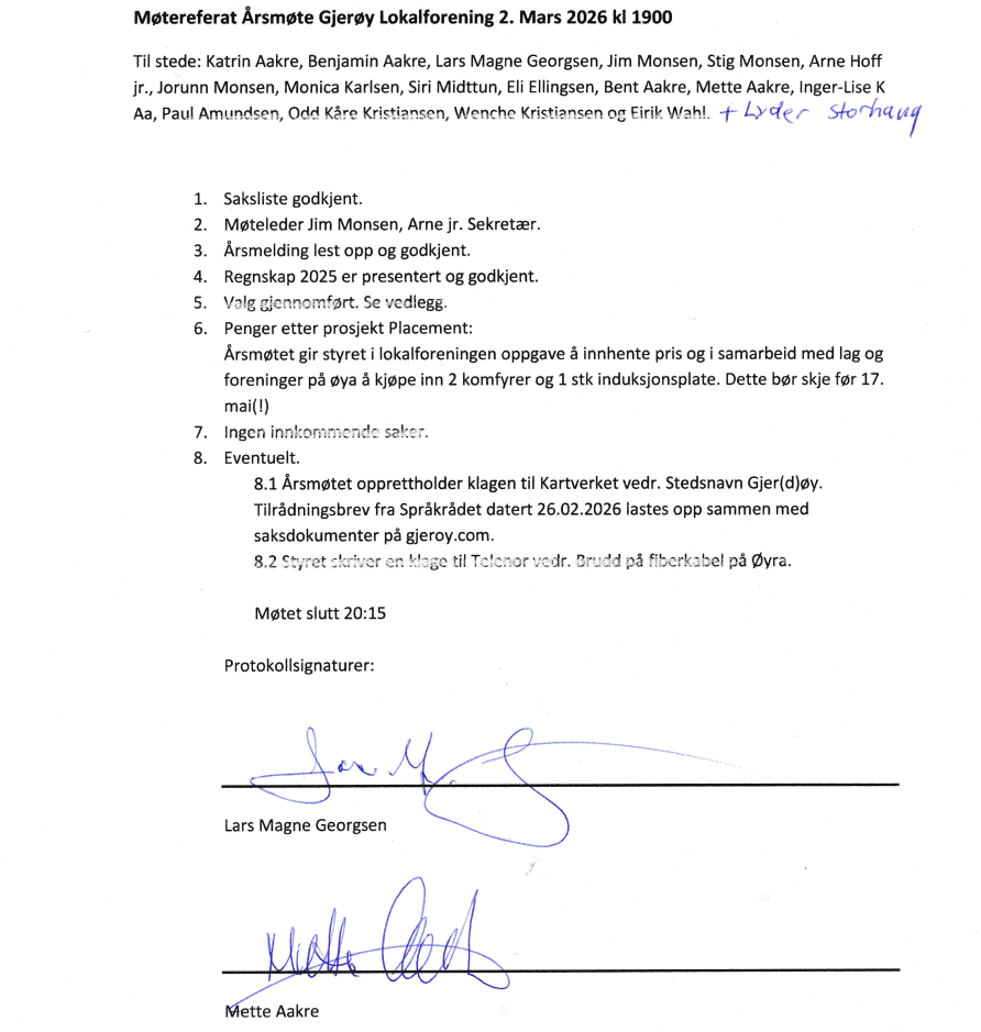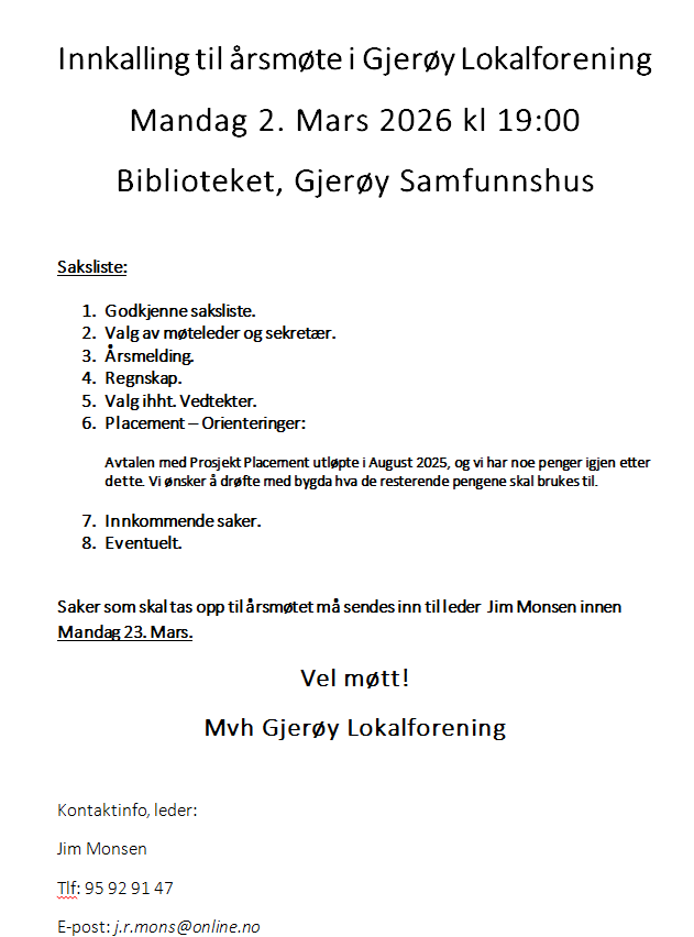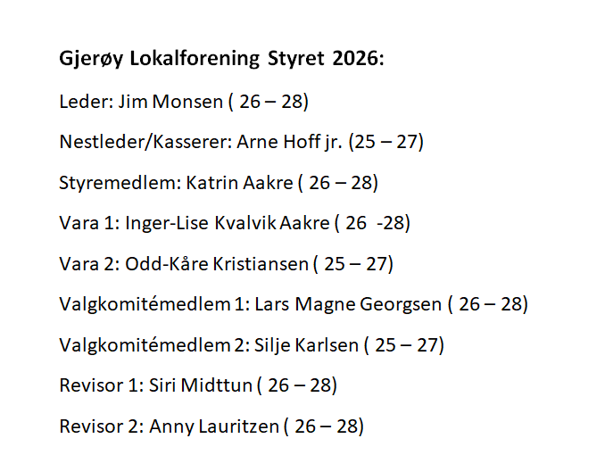 Årsmøte Gjerøy Lokalforening 02. Mars 2026: