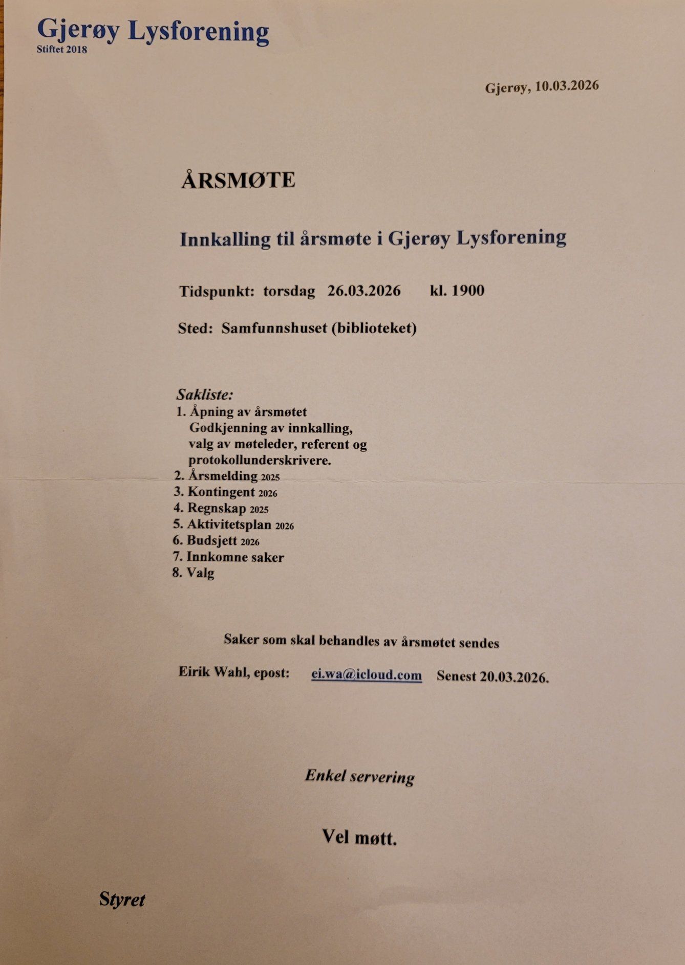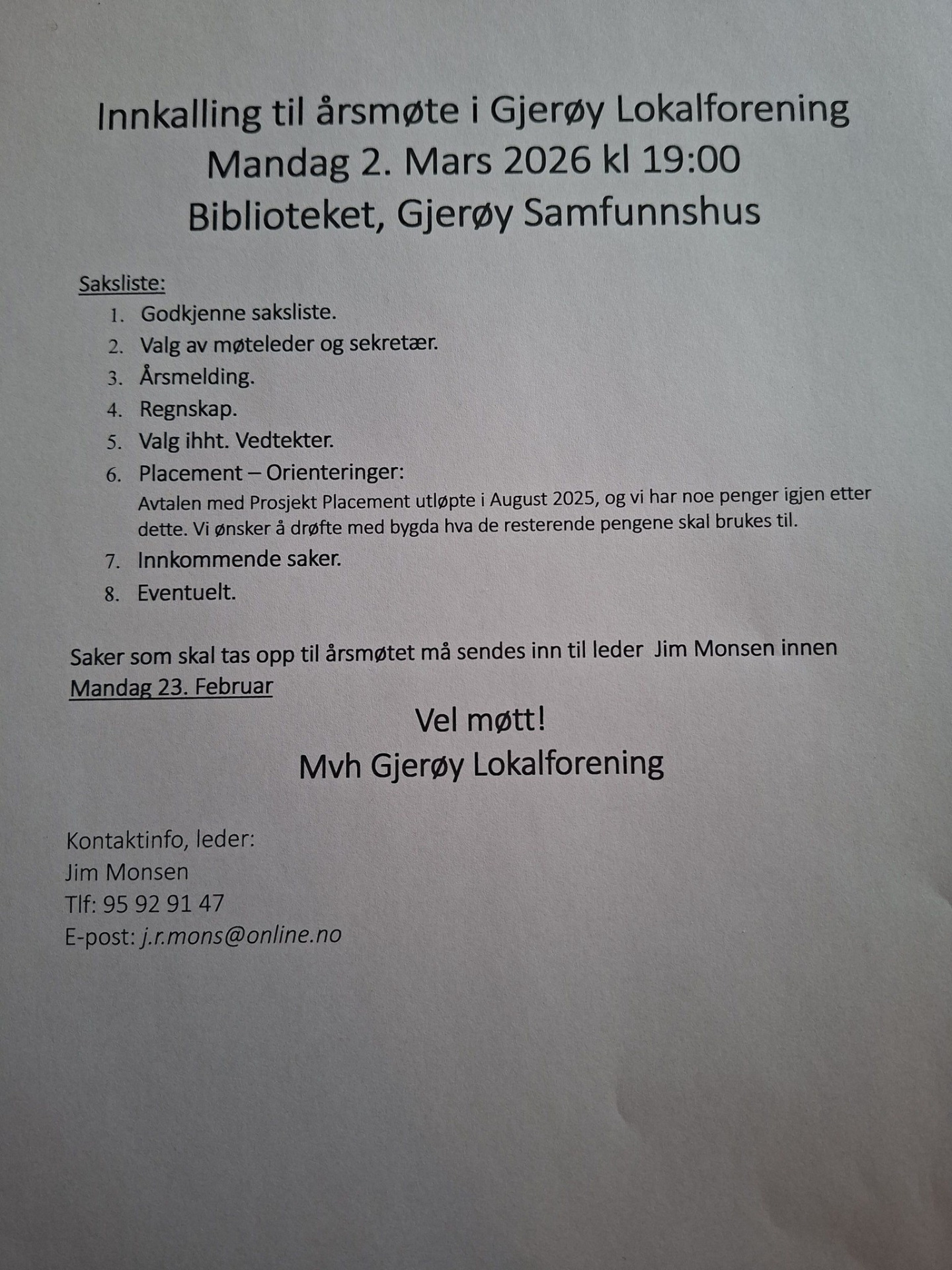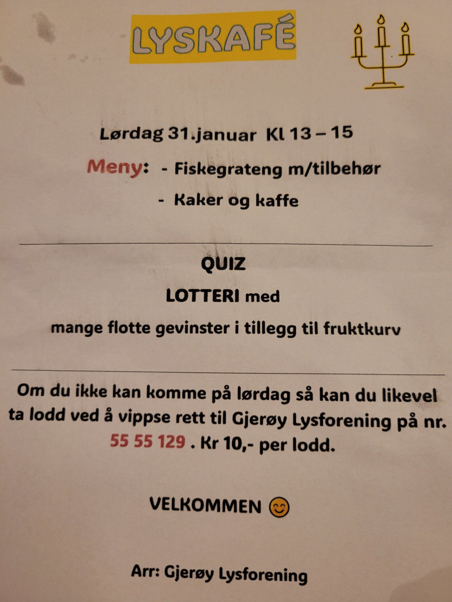 Her kan du finne informasjon om arrangementer og aktiviteter som skjer på Gjerøy. Har du et oppslag som du ønsker vi skal publisere på denne siden kan du kontakte Arne!